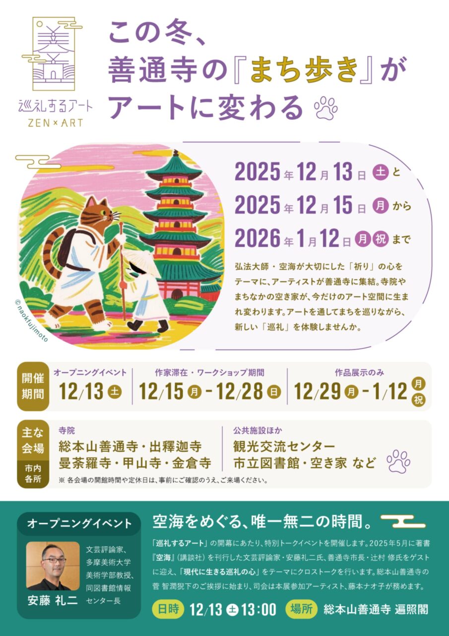 アートを通じて善通寺の魅力を再発見する特別な機会。ぜひ、この冬は香川・善通寺で心揺さぶるアート体験を!
