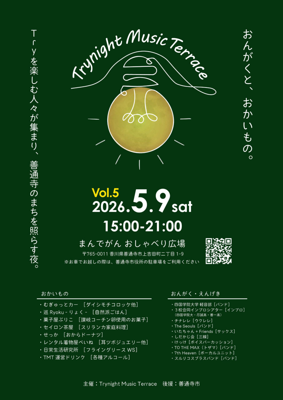 善通寺市のおしゃべり広場で「Trynight Music Terrace vol.5」が2026年5月9日 (土)に開催